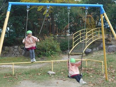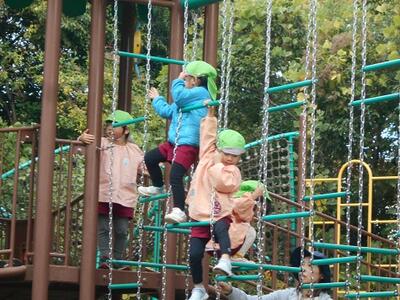 公園では、遊具で遊んだり、どんぐりを拾ったり虫つかみをしたりしながら、心地よい気候の中で自然を感じながら楽しい時間を過ごしました。