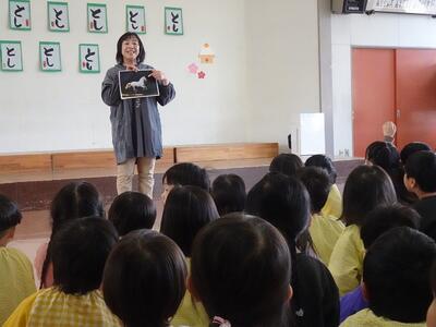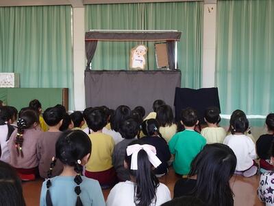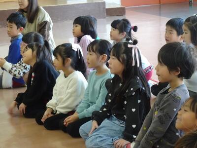 「ぐらぐらもりのおばけ」というお話を聞かせていただいたり、みんなで「世界をしあわせに」という人権イメージキャラクターソングを歌ったりして、「いじわるをしない」「なかよくする」「自分も友だちも大事」など、とても大切な人権について教えていただきました。