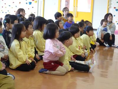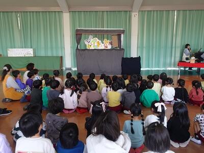 5歳児のお店屋さんに出かけたり、先生のお店屋さんで素敵な折り紙の作品を買ったり、みんなで遊戯室に集まって各学年の歌の発表を聴いたり、先生の出し物で「どうぞのいす」の劇を観たりして楽しく過ごしました。