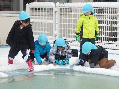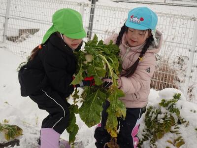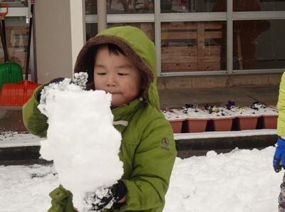 登園時間帯は雪も降っていたのですが遊び始めるころには日が差してきて、園庭のあちらこちらから子どもたちの歓声が響いていました。