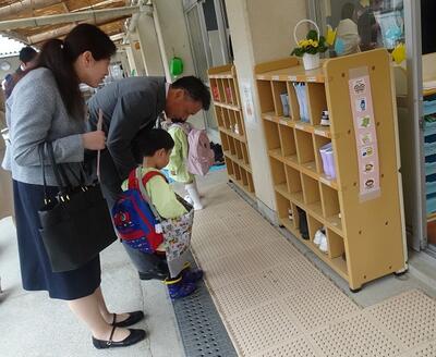 おうちの方と一緒に手をつないで登園される姿は、ちょっと緊張しつつも、とてもにこやかでうれしそうでした。