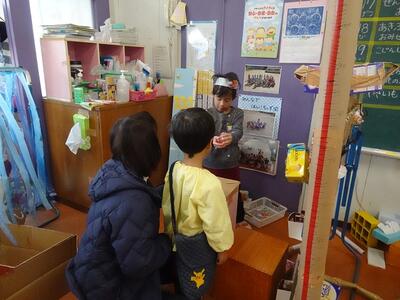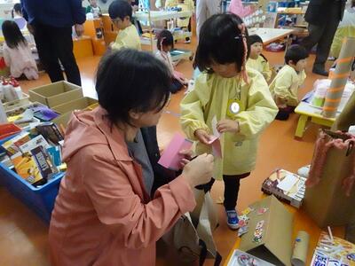 また、園運営協議会の皆様にもお越しいただき、5歳児のお店屋さんのお客さんになっていただいたり、子どもたちの様子を参観し、園生活の様子や子どもたちの成長の様子について協議会で話し合ったりしていただきました。
