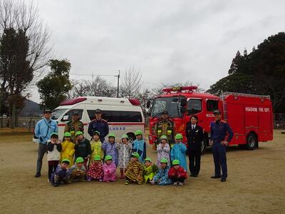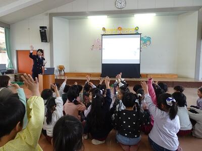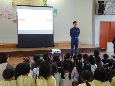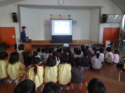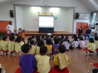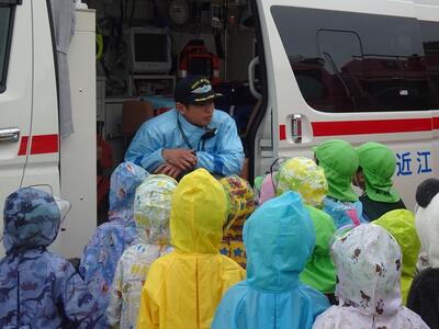 今日は、近江八幡消防署の皆さんにお越しいただき、消防おはなし会を実施していただきました。
