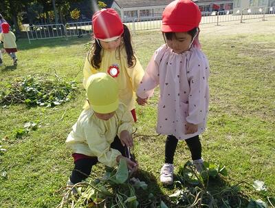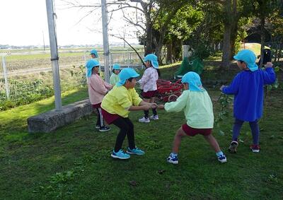 おいもを掘ったあとは、ツルで電車ごっこや綱引き、縄跳びなどをして楽しく遊びました。