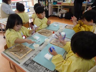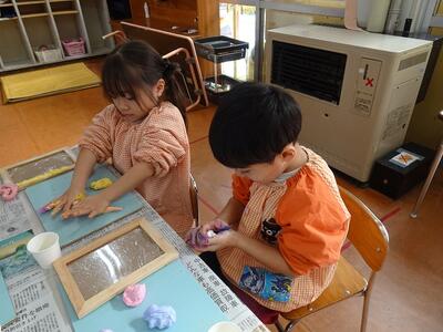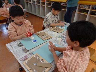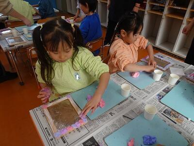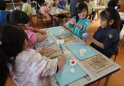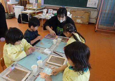 乾燥させて持ち帰るのを楽しみにしている子どもたちです。