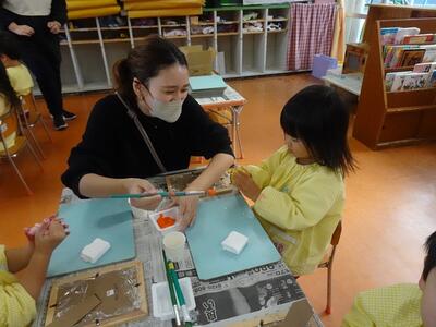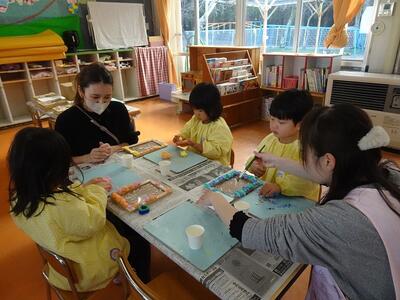 子どもたちは、役員の皆さんに教えていただきながら好きな色を選び、思い思いに飾りつけをして、楽しんで作ることができました。