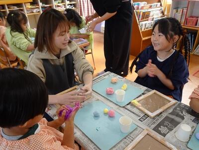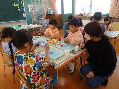 秋ごろから、PTA研修部長さんを中心に、学級代表や本部役員の皆さんが準備を進めてきてくださいました。紙粘土の量や絵の具の色、ビーズの数など試作品を作りながら、子どもたちが楽しく体験できるように考えながら準備してくださいました。