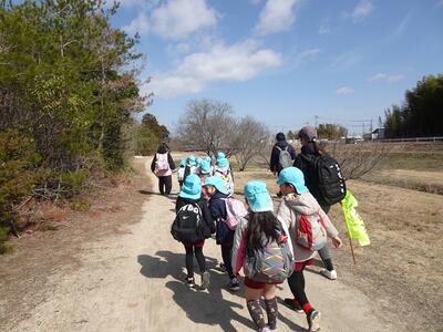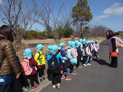 今日は、5歳児のお別れ遠足。こども園で最後の地域たんけんに出かけました。