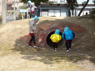 美松台地区では、からす公園でたっぷり遊び、ぐるぐる公園でお弁当をいただき、楽しく過ごしました。地域のコミュニティホールでお手洗いをお借りしお世話になりました。