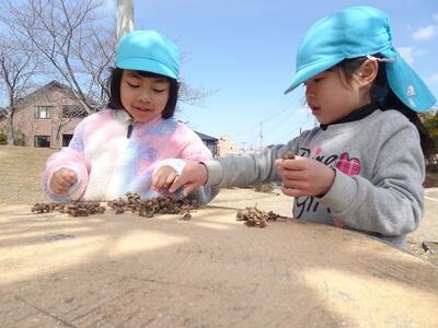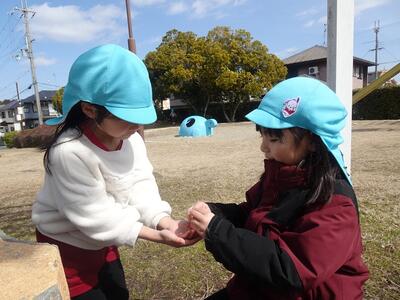 最後には、5歳児から4歳児へ・・・大事に育てた「朝顔の種」と毎日お世話をしてきた「メダカの飼育グッズ」を渡して、「よろしくね」と引き継ぎました。