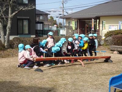 「おはながわらった」の手遊び歌や、「せんろはつづく まだつづく」の絵本、「ひなのやまかご」「しゃぼん玉とばせ」のパネルシアターを見せていただきました。