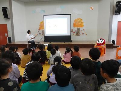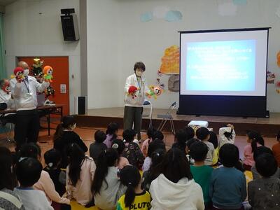 「ぐらぐらもりのおばけ」というお話を聞かせていただいたり、みんなで「世界をしあわせに」という人権イメージキャラクターソングを歌ったりして、「いじわるをしない」「なかよくする」「自分も友だちも大事」など、とても大切な人権について教えていただきました。