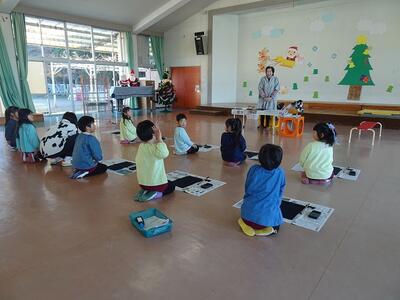 12月に入り、あちらこちらからクリスマスにちなんだ歌が聞こえてきたり、ツリーやリースの飾りにワクワクしたりしながら、「サンタさん来てくれるかな・・・」とみんなで楽しみにしていました。