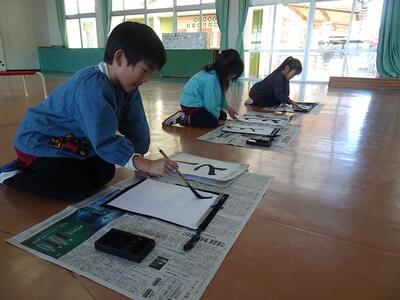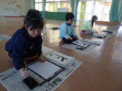 新しい「とし」が良い一年になりますように・・・そんな願いをもって一生懸命取り組む子どもたちの表情は真剣そのもの。一人ひとりの素敵な習字作品ができあがりました。