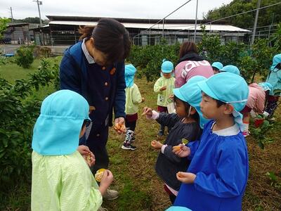 今日は、4・5歳児の園外保育で清水果樹園さんでの「みかんがり」(4・5歳児)とアグリパーク竜王さん(5歳児)に出かけました。