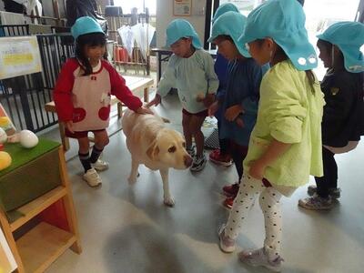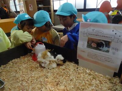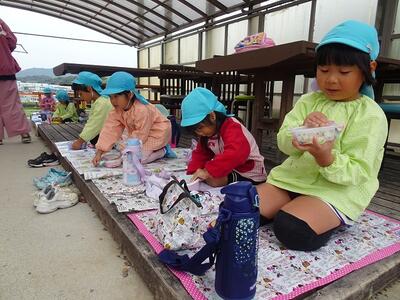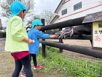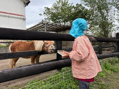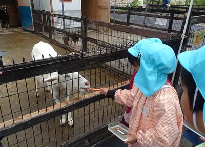 その後、5歳児はアグリパーク竜王さんに移動して、ふれあい動物園で動物たちと触れ合ったり、お弁当を食べたり、鯉のえさやりをしたり、楽しい時間を過ごしました。
