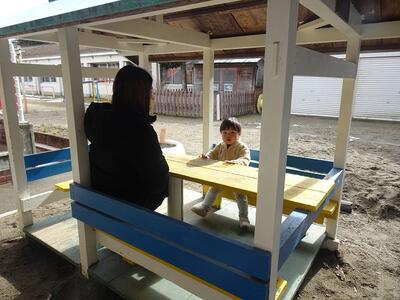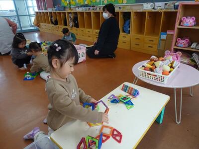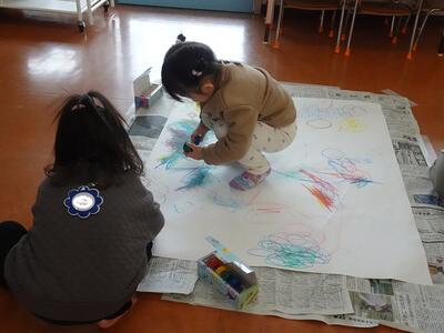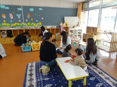 室内に用意した玩具やお絵描きなどでお家の方やお友だちと楽しく遊ぶ様子が見られました。