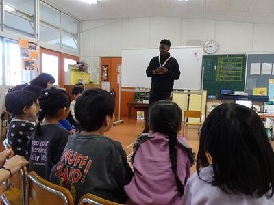 朝から少し冷たい風が吹いていましたが、子どもたちは初めて行く地域にワクワク、自分の住んでいる地域に友だちが来ることにワクワク・・・楽しみに出かけることができました。