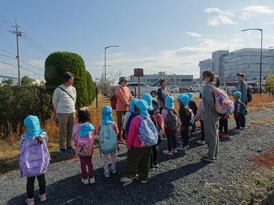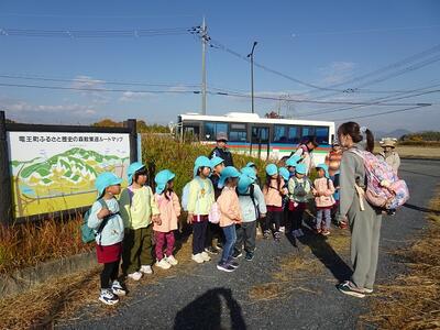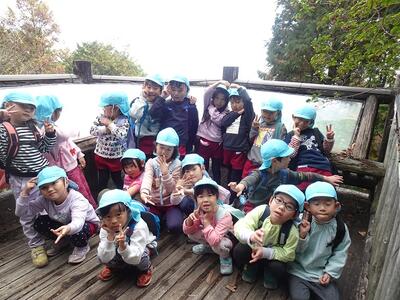 頂上付近の展望台からは自分たちのこども園を見ることができて、喜んでいました。