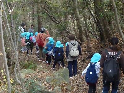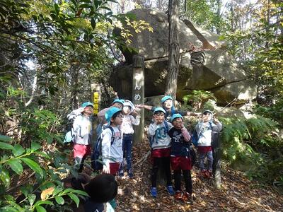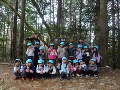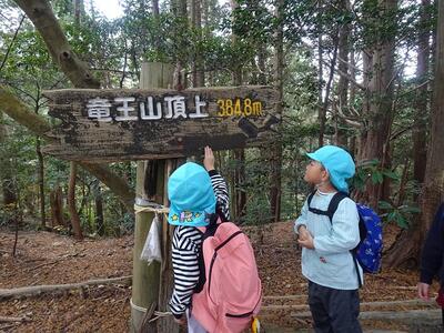 途中、段差の大きい場所や狭い場所、険しいところもある山道でしたが、子どもたちは元気いっぱい頂上まで登りきることができました。