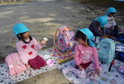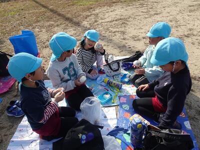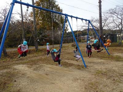 下山した後は、鏡の公園まで行きみんなでおいしいおにぎりをいただきました。鏡の公民館でお手洗いをお借りし、公園でもたくさん遊ばせていただきました。