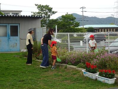 今日は、5歳児が園の畑に大根とカブの種まきを、4歳児がプランターにブロッコリーの苗を植えました。