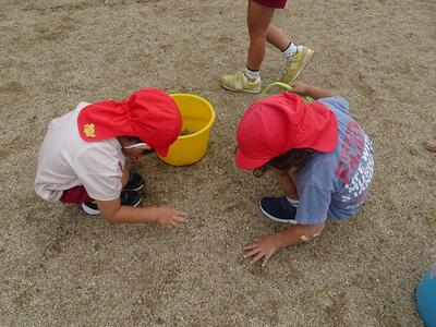 今日は、ぴかぴかすっきりデーを実施し、広い園庭で元気いっぱい遊べるように草むしりや石拾いをしました。